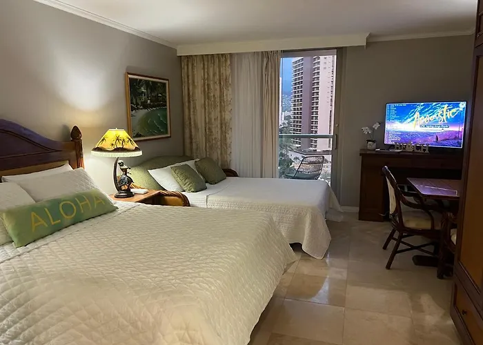 While staying in the hotel, you are invited to discover the water Kuhio Beach Park, located 18 minutes' walk away, or visit sports venues like Stan Sheriff Center Arena, which is approximately 10 minutes' drive away. The Aloha Gem is a few moments from Ala Wai Golf Course and 15 km from Honolulu airport. Entertainment in the area includes the Ala Wai Canal 2.5 km from the property. Trolley bus stop is not far from this Honolulu hotel.